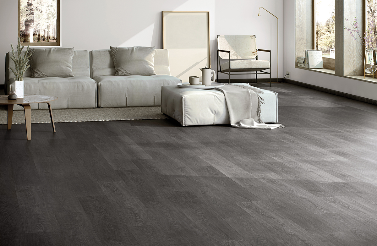 En el Roble Kalas Bruno la textura mate del suelo está sincronizada con el característico dibujo de la madera de roble de este diseño. Su excelente acabado destaca incluso más que su color oscuro.