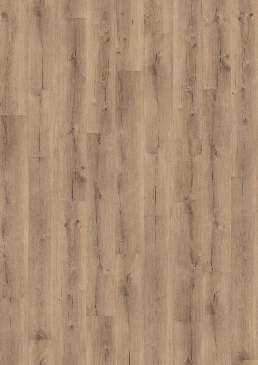 El estilo rústico y el gran realismo de este diseño Roble Obelisque se consiguen gracias a sus nudos y grietas bien definidos y su tono de roble claro natural. El efecto extramate y la profundidad de la textura de madera del acabado Tibet combinan a la perfección con este diseño.