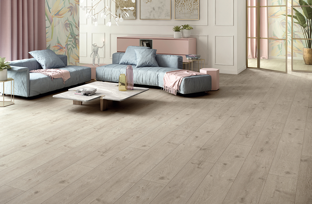 El diseño Roble Eyre Beige es una apuesta segura para conseguir un espacio joven y contemporáneo. Tiene un color claro natural con un toque gris, nudos sutiles y una textura arenada. Su excelente acabado mate y su sincronización con el dibujo del roble aumentan el realismo del resultado.