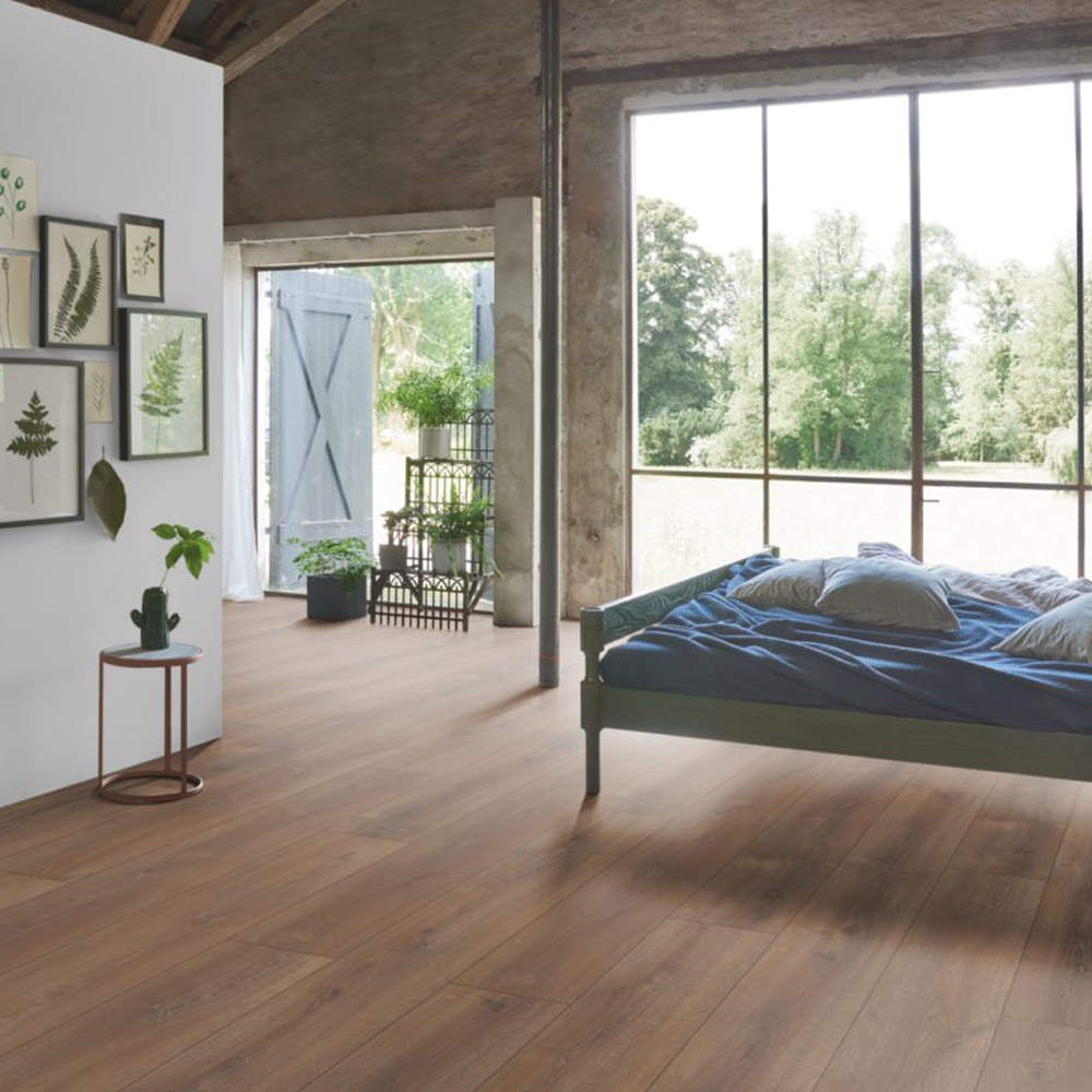 El modelo Roble Montana Calizo se presenta en gran formato de una lama, que aporta profundidad y elegancia a la estancia. La oscura tonalidad de este laminado es perfecta para espacios amplios, donde crea una atmósfera íntima y acogedora. El diseño de las vetas y nudos de la madera refleja la madera en su estado más natural. La presencia de bisel aporta mucha autenticidad y crea espacios muy personales. Combina muy bien en ambientes tradicionales y clásicos.