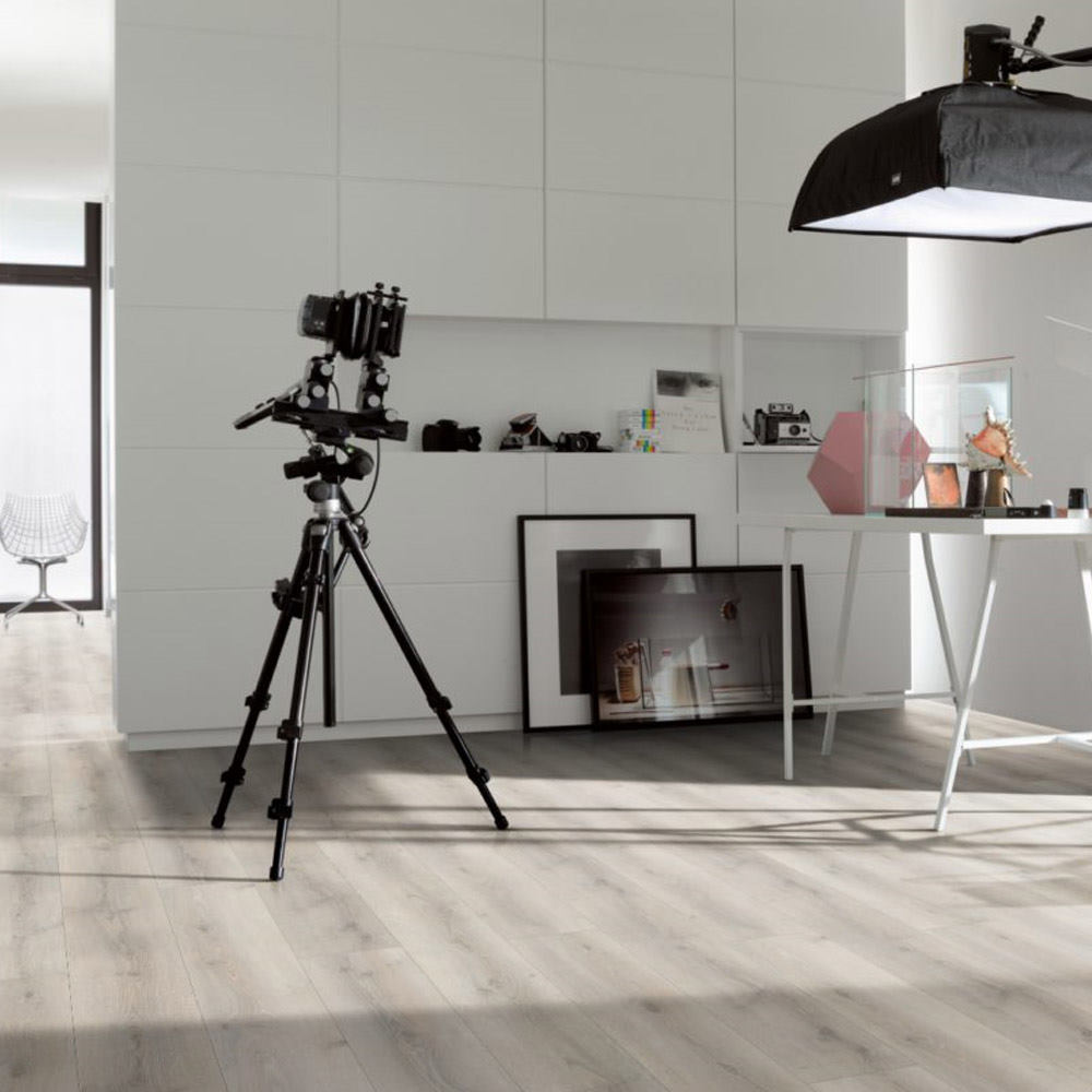 El modelo Roble Askada Blanco Calizo se presenta en gran formato de una lama. La clara tonalidad de este pavimento lo hace idóneo para su instalación en estancias pequeñas o con poca luz, creando un ambiente más luminoso y con la sensación de mayor amplitud. Su estructura de madera natural, junto con el bisel a los cuatro lados, crea un suelo con gran realismo que imita los elegantes suelos de madera. Combina muy bien en ambientes vintage y estilos de decoración nórdico.